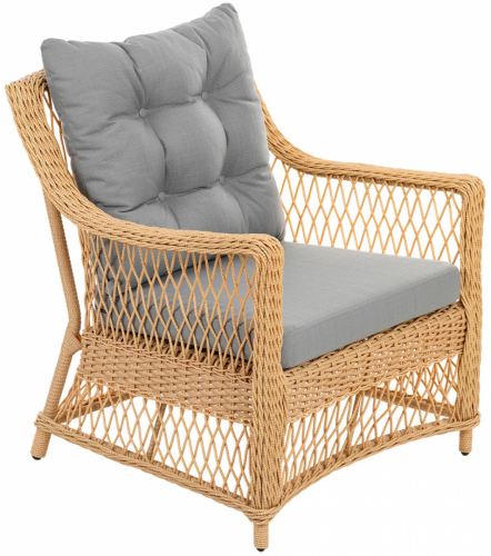 Кресло изготовлено из высококачественных материалов, обеспечивающих максимальный комфорт. Его мягкие подушки позволят вам расслабиться и наслаждаться временем, проведенным с семьей и друзьями. Материалы, использованные в производстве, устойчивы к воздействию внешней среды. Вы можете не беспокоиться о том, что дождь или солнечные лучи повредят вашу мебель.