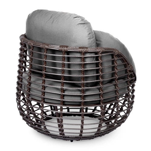 Эргономика кресла обеспечивает комфорт: спинка и подлокотники образуют единую чашу, мягко поддерживающую корпус. Материалы подобраны для долговечности: ротанг не выцветает на солнце, а каркас с порошковой окраской защищен от коррозии. Модель органично вписывается в частные террасы, зоны у бассейна и коммерческие пространства. Преимущества коллекции: глубокая посадка с полной поддержкой спины, устойчивость к влаге и ультрафиолету, простой уход без специальных средств.