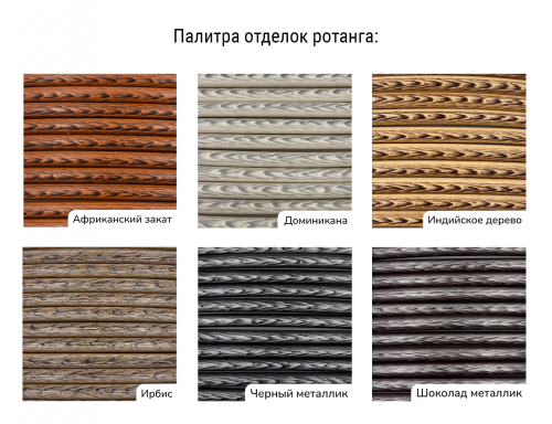 Цена на сайте указана за модель с плетением в цвете Шоколад Металлик и обивкой подушек из ткани Jamaica Grey. Для уточнения всех возможных вариантов материала и цвета данного изделия обращайтесь к нашим менеджерам.