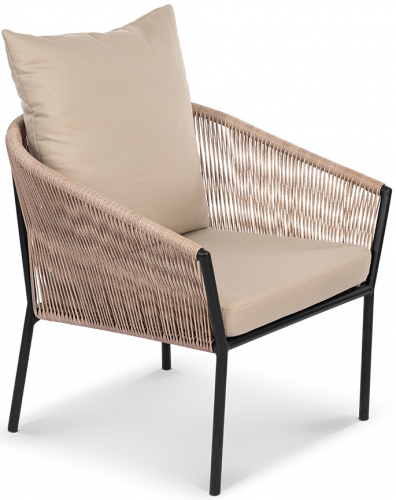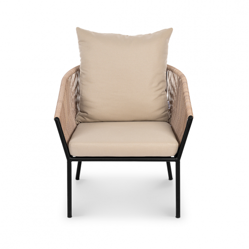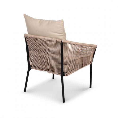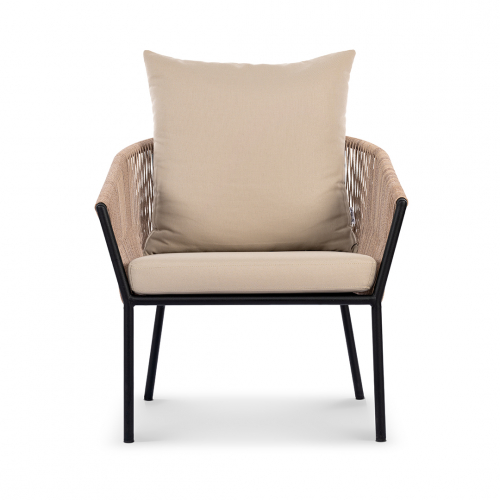 Коллекция Patio воплощает искусство создания уютного и элегантного пространства под открытым небом. Еe лаунж кресло, с его легким силуэтом и тонкими линиями, визуально расширяет границы террасы, наполняя еe ощущением воздушности и безмятежного отдыха. В основе дизайна - гармоничный синтез материалов: прочный цельносварной алюминиевый каркас, аккуратное плетение из стойкого искусственного ротанга и мягкие подушки из практичной уличной ткани. Полупрозрачный, ажурный контур, подчeркнутый тeмным металлом, создает аккуратную и современную композицию даже в компактных зонах.