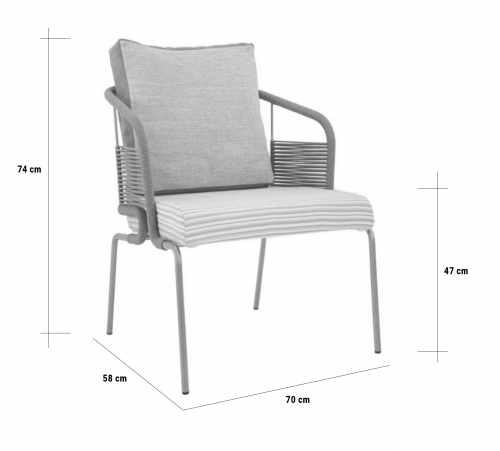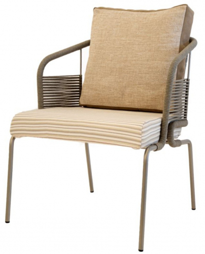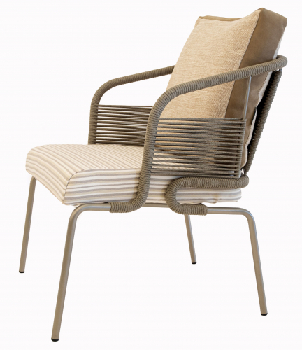 Как произведение искусства, кресло Pietrasanta с его легким и извилистым плетением предлагает плавное сочетание комфорта и практичности. Эргономичная форма спинки, украшенная красивыми переплетениями роупа, и мягкое сиденье придают декоративный оттенок, казалось бы, простому дизайну.