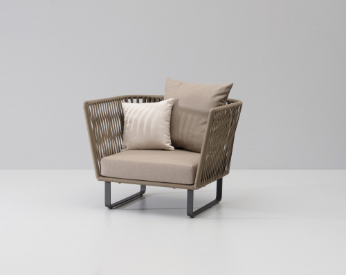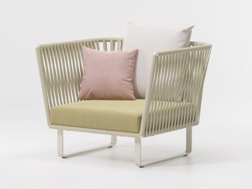 Кресло Bitta характеризуется сочетанием алюминиевой рамы, канатов из плетеного полиэстера и удобных подушек. Как утверждает дизайнер, - "Моя цель состояла в том, чтобы создать плотную оплетку, которая бы все еще пропускала воздух, напоминающую плетение используемых канатов для швартования лодок (отсюда и название Bitta, что в переводе с итальянского означает «швартовка»), благодаря чему детали выглядят легкими, но в то же время они выглядят как уютные гнезда в естественных цветах, для отдыха и расслабленного времяпрепровождения."