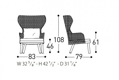 Алюминиевая конструкция напоминает силуэт классического кресла-бержер, интерпретируя его в современном ключе. Технические материалы наполнения, покрытия и плетения обеспечивают максимальную устойчивость к УФ-лучам и атмосферным воздействиям.