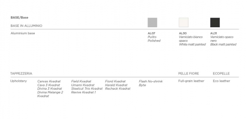 Цена на сайте указана за модель с каркасом из полированного алюминия и обивкой из материала Flash/Byte. Цены на другие модели и дополнительную информацию уточняйте у менеджеров