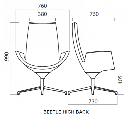 Коллекция Beetle отображает простые линии, которые создают комфорт. Мягкое кресло с высокой спинкой с большим выбором материалов для обивки прекрасно впишется в интерьер любого пространства как частного, так и коммерческого.