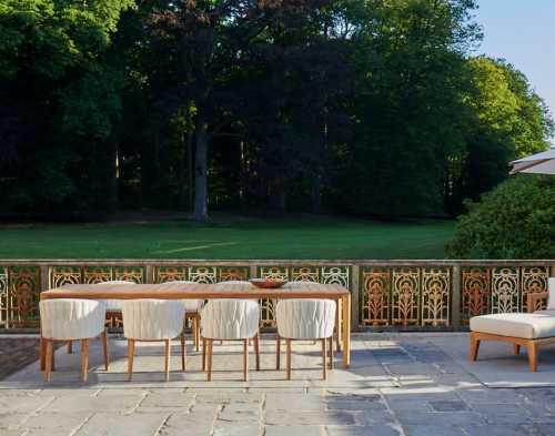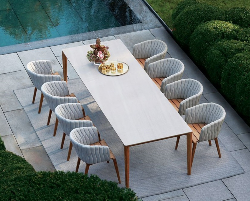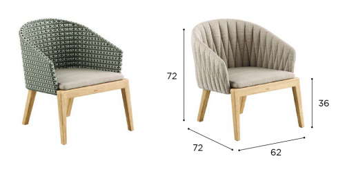 Коллекция Calypso мгновенно стала одной из флагманских в линейке Royal Botania. В ней представлены различные кресла обычной высоты, а также барные и лаунж-кресла. Все они имеют основу из тикового дерева и спинку из нержавеющей стали, которую можно оснастить мягкой текстильной обивкой или искусственным ротангом. Спинка легко снимается, что упрощает чистку и хранение в зимнее время. Коллекция тканей с большим выбором цветов и фактур позволяет придать креслам индивидуальный дизайн и даже менять его по сезону или настроению.