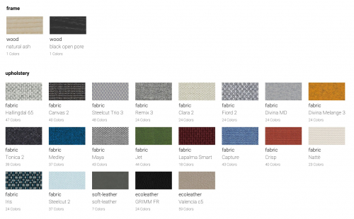 Варианты обивки: ткани категории A, B, C, D, мягкая натуральная кожа, ткань клиента (размер 2900х1400 мм).