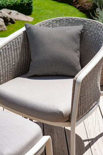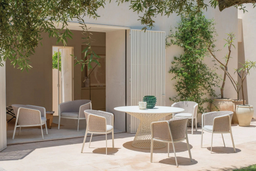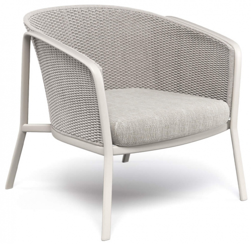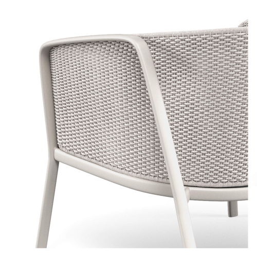 Лаунж-кресло Carousel с прочным каркасом из алюминия и изысканным плетением из роупа станет отличным украшением любого открытого пространства или закрытого помещения. Материалы, используемые в изготовлении модели, гарантируют длительную стойкость и стабильность цвета. Сиденье и каркас крепятся между собой структурной сваркой TIG. Такая технология обеспечивает особое сопротивление, а также лучший стандарт с точки зрения прочности и эстетики.