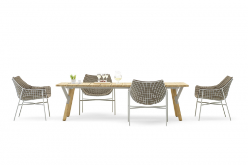 Сердцем и душой коллекции является искусная металлическая сетка - изящное переплетение проволоки, доступное в широкой палитре цветовых решений. Эта структура задает тон всей мебели, создавая эффект прозрачности и легкости, который так ценится в современном дизайне. Каждый элемент Summer Set призван стать не просто предметом меблировки, а акцентной деталью вашего личного пространства на открытом воздухе.
