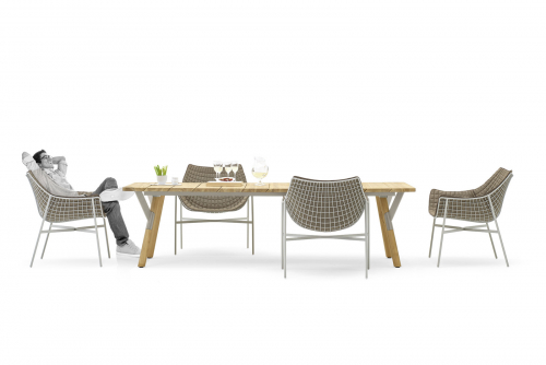 Лаунж кресло Summer Set с каркасом из стальных прутьев, украшенным геометрическими линиями, создает практически неосязаемую поверхность. Современность и традиции находят новое выражение в кресле с широким и удобным сиденьем, где можно провести целые дни, погрузившись в краски природы. Благодаря своему свежему и динамичному силуэту, это кресло станет идеальным выбором для модного заведения или ресторана с видом на море, даря своим гостям моменты истинного релакса.