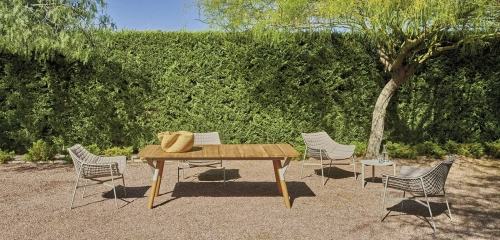 Коллекция Summer Set - это свежий взгляд на обустройство террас и зон отдыха на открытом воздухе. Вдохновленная высочайшими образцами авангардного дизайна, эта линейка мебели воплощает чистоту линий и динамичный стиль. Линейка включает в себя кресла, диваны, журнальные столики и пуфы, объединенные общей архитектурной выразительностью.