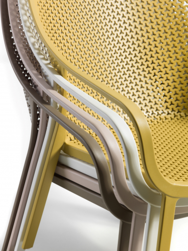 Коллекция Gianet создана для тех, кто ценит простую элегантность и удобство в использовании. Плавные линии спинки и сиденья обеспечивают комфортную посадку, а перфорированная декоративная отделка придаёт изделию лёгкость и современный характер.