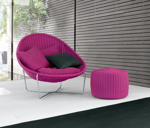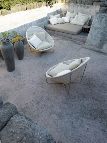 Nido - это коллекция кресел и пуфов, созданная для расслабления и уединенного отдыха. Отличительной особенностью коллекции является фирменная тесьма из эксклюзивной пряжи, разработанной и произведенной Paola Lenti для наружного применения. Тесьма может быть однотонной, двухцветной или разноцветной. Кресло Nido комплектуется дополнительными подушками, покрытыми эксклюзивными уличными тканями коллекции Paola Lenti. Использование легких, прочных и качественных материалов гарантирует удобство во время сидения, визуальную легкость и эстетическую ценность для окружающего пространства.