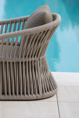 Изысканное кресло Method отличается современным дизайном, который повышает ее комфорт и элегантность. Модель обладает притягательным и теплым внешним видом благодаря каркасу, который оплетен канатом роуп ручной работы. Универсальные цвета позволяют креслу органично вписаться в пространства разнообразных стилевых направлений. Оно станет превосходным решением для обстановки защищенных открытых площадок: террас ресторанов или веранд летнего кафе.