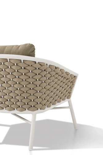 Dub – это плетеное лаунж кресло с инновационным и притягательным дизайном. Его преимуществами являются: прочный каркас, обладающий большой устойчивостью, а также мягкие подушки на сиденье и спинке, которые обеспечивают удобство и комфорт. Линия спинки плавно переходящая в подлокотники, придает модели легкость и лаконичность. Корпус, изготовленный в виде плотного плетения, является изюминкой и делает модель стильной. Кресло станет отличным решением для обустройства зон отдыха на защищенных открытых пространствах. Dub внесет в лаунж зону современную нотку эксклюзивности, но в то же время сделает атмосферу расслабляющей и комфортной для отдыха.