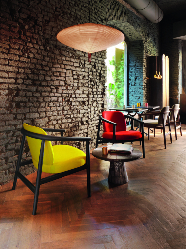 Коллекция Maiyda состоит из обеденного кресла и кресла для отдыха. Характер серии вдохновлен моллюсками с их типичной парой раковин. Как и кастаньеты, два элемента сиденья и спинки с мягкой обивкой помещены в прочный деревянный каркас. Для дизайна важны комфорт и щедрость, а также честный подход, чем и обладает модель. Лаунж-кресло станет отличным решением для создания комфортных условий отдыха в помещениях сферы Contract и подойдет для частных проектов.