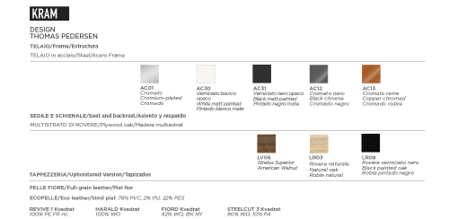 Дизайн лаунж стула Kram вдохновлен формой открытой морской раковиной. Стул для отдыха имеет стальной каркас на трех ножках и корпус из фанеры дуба с различными вариантами отделки. Стильный и комфортный он идеально подойдет для любых интерьеров.