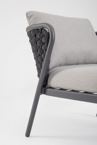 Лаунж-стул Harlow обладает изюминкой в виде плетеного корпуса. Изделие разработано для создания престижных и привлекательных зон отдыха на свежем воздухе. Комфортные подушки обеспечивают максимальный комфорт во время расслабления, а их съемные чехлы – простоту и легкость в обслуживании. Алюминиевый каркас обеспечивает долговечность, надежность и прочность всей конструкции.