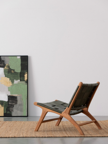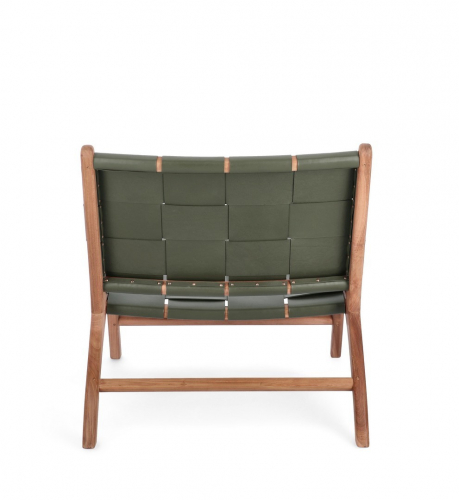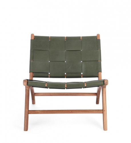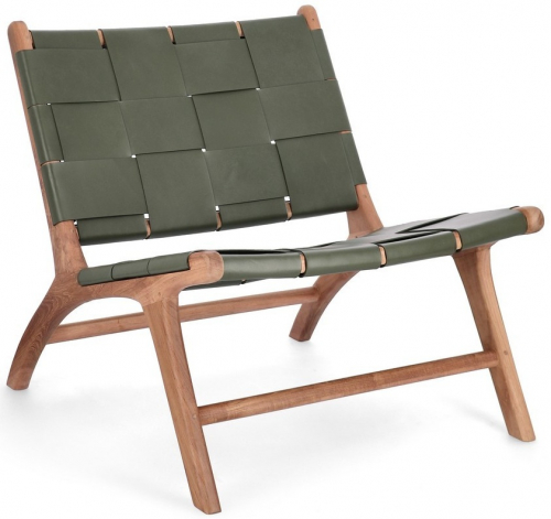 Лаунж стул Joanna - это уникальный предмет мебели, обладающий невероятным шармом. Его каркас изготовлен из тикового дерева, покрыт краской на водной основе. Сиденье и спинка обиты натуральной кожей, которая прочна и будет красиво выглядеть долгие годы. Переплетенное сиденье и спинка подчеркивают оригинальный внешний вид кресла, а сочетание коричневого и зеленого цветов придает ему уникальный характер. Это изделие идеально подходит в качестве удобного предмета мебели для отдыха в гостиной, гостевой комнате или спальне.