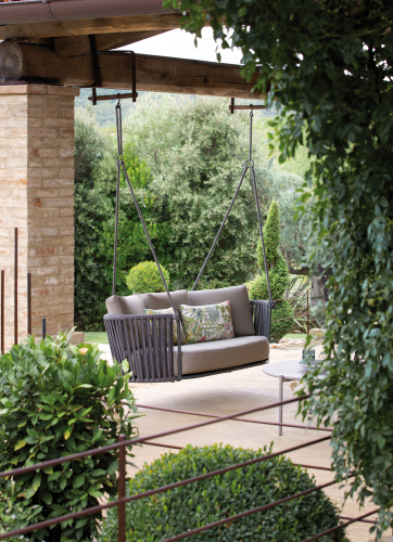 Стройные линии переплетения дивана-качелей Daisy Rope идеально сочетаются с крепким стальным каркасом. Завершает рецепт идеального отдыха на открытом воздухе мягкая подушка на сиденье и под спину.