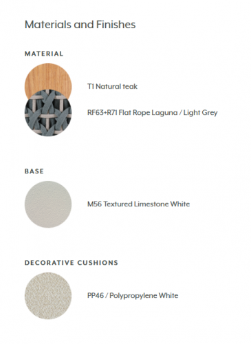 Цена на сайте указана за модель из тика натурального цвета и роупа цвета laguna/light grey. Для уточнения всех возможных вариантов материала и цвета данного изделия обращайтесь к нашим менеджерам.