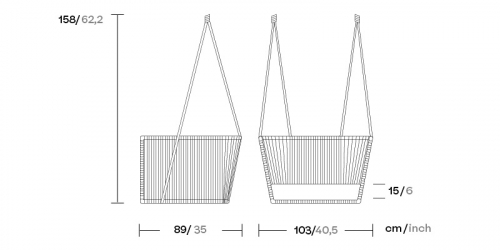 Кресло-качели Bitta характеризуется сочетанием алюминиевой рамы, канатов из плетеного полиэстера и удобных подушек. Как утверждает дизайнер, - "Моя цель состояла в том, чтобы создать плотную оплетку, которая бы все еще пропускала воздух, напоминающую плетение используемых канатов для швартования лодок (отсюда и название Bitta, что в переводе с итальянского означает «швартовка»), благодаря чему детали выглядят легкими, но в то же время они выглядят как уютные гнезда в естественных цветах, для отдыха и расслабленного времяпрепровождения."