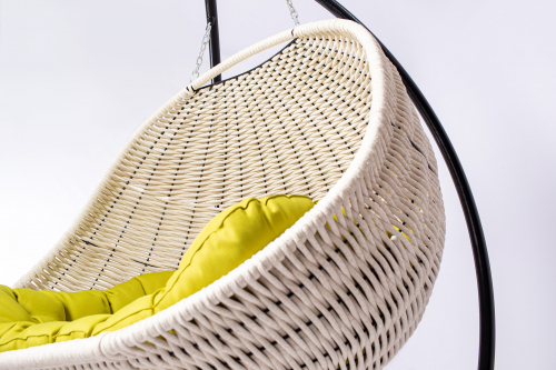 Кресло-кокон можно подвешивать под потолком либо закрепить на дугообразной стойке. Кресло предназначено для эксплуатации в помещении и на улице. Устойчиво к выцветанию и воздействию внешней среды. Во время эксплуатации на улице, без использования чехла для хранения на улице, рекомендуется убирать подушку в помещение.
