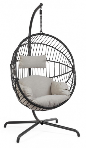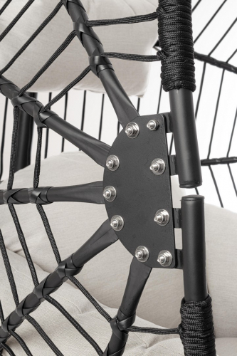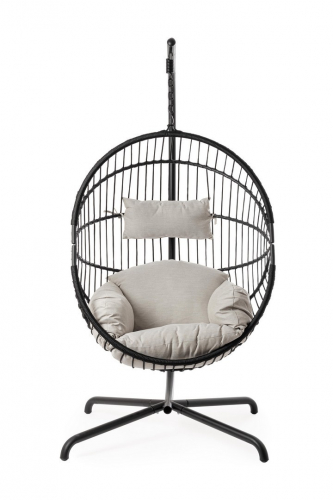 Подвесное кресло Finley на крестообразном основании обладает отличительной чертой в виде плетеного сидения. Он станет отличным решением для украшения зон отдыха на свежем отдыхе и сделает атмосферу очень спокойной и расслабляющей. Обволакивающее сиденье создает ощущение безопасности и уединенности. Комфорт и удобство обеспечивают подушки из качественной ткани серого цвета.