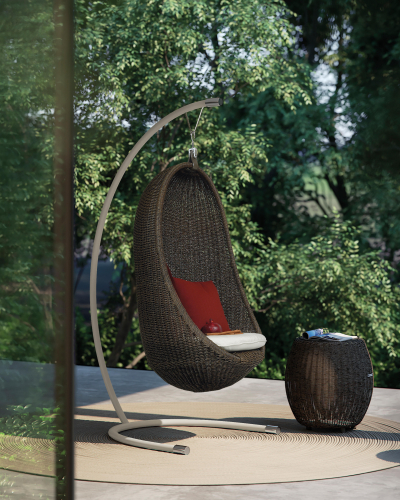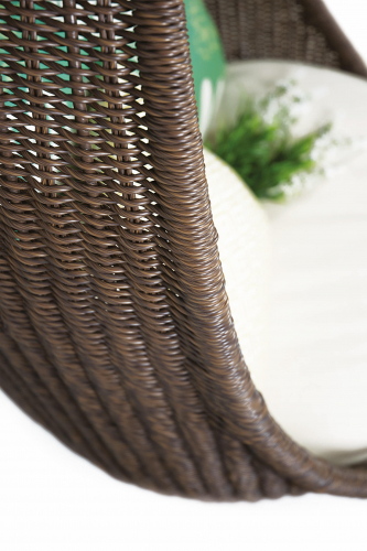 Икона релаксации: с овальной формой и металлической структурой, покрытой переплетением, подвесное кресло Nest выглядит как парящее облако. Вся алюминиевая мебель Atmosphera имеет порошковое покрытие белого или графитового цветов. Порошковое покрытие обеспечивает устойчивость поверхности к ударам и царапинам. Искусственный ротанг, искусно обработанный вручную, выполнен из экструдированного полиэтилена высокой плотности. Материалы, используемые для отделки, напоминают самые ценные натуральные волокна (ротанг, плетение, бамбук) и предлагают высокий стандарт качества. Они долговечны и устойчивы к любым атмосферным воздействиям, таким как дождь, соленая вода, а их цвет защищен от ультрафиолета.