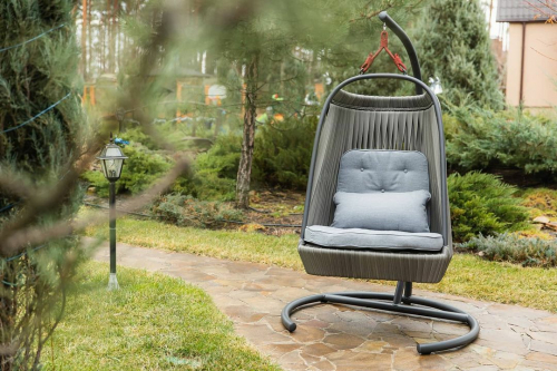 Подвесное кресло Wind сочетает в себе строгие линии лакированного алюминиевого каркаса и плетение из экоканата. Кресло обладает естественной легкостью и элегантностью. Дизайн плетения каркаса и прочность металлических ножек создают комбинацию, которая источает энергию. Подушки для сиденья и спинки, выполненные из устойчивого к пятнам и ультрафиолетовому излучению олефина, обеспечивают комфортный отдых. Наполнитель подушек - быстросохнущий вспененный материал. Подвесное кресло Wind успешно справляется с задачей, когда дело доходит до украшения дома или общественных мест. Оно замечательно впишется в интерьер комнаты, а также станет украшением любого открытого пространства.