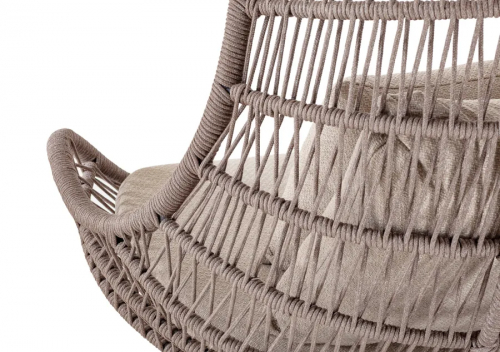 Leaf - стильное подвесное кресло, сочетающее в себе максимальный комфорт и современный дизайн. Прочная алюминиевая рама обтянута высококачественным, водонепроницаемым текстильным канатом, что придает креслу воздушность и элегантность. Просторное сиденье со съемными подушками из олефина и быстросохнущим наполнителем Quick Dry Foam обеспечивает особый комфорт. Идеально подходит для отдыха в саду, на террасе или в гостиной.