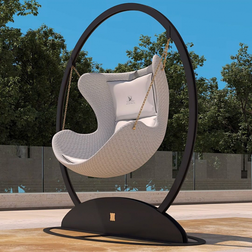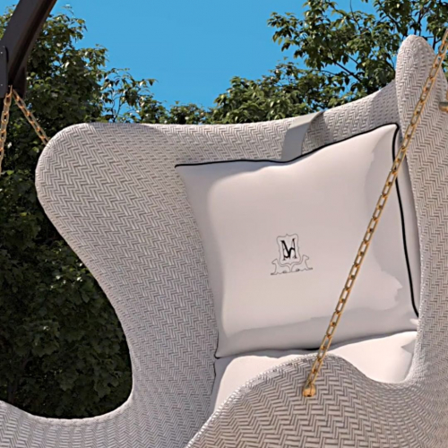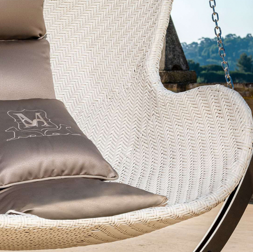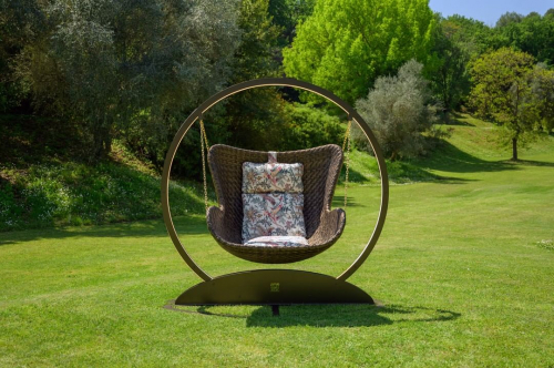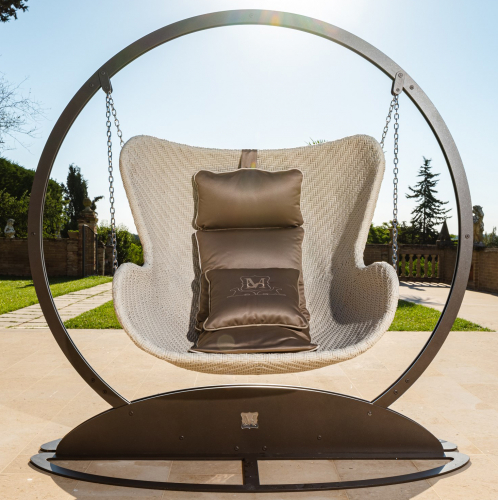 Подвесное кресло-качели - синоним релаксации, способные создавать очаровательную и гармоничную атмосферу. Эта модель вдохновлена культовым креслом Aldebaran и переняла его форму, еще больше расширяя концепцию комфорта в гламурном ключе. Каркас из синтетической смолы, сотканный исключительно вручную, имеет форму просторного и удобного сиденья: гнездо, в котором можно немного побаловать себя. Общий облик дополняет и оригинальна внешняя несущая конструкция: железный круг, представляющий собой реальный каркас, в котором подвешено кресло. Тонкое уравновешивание основных объемов, которые поддерживают важный и изысканный сценический вид.