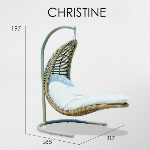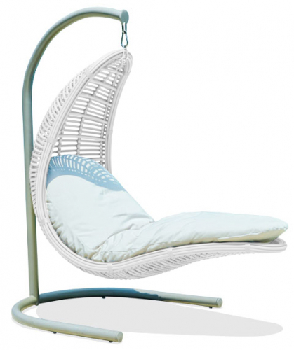 Плетеное подвесное кресло Christine из искусственного ротанга цвета White Mushroom и подушкой из ткани Sunbrella цвета Linen Champagne. Оригинальное и удобное кресло прекрасно подойдет для отдыха на террасе, в саду или на любом открытом пространстве. При желании эту модель можно также разместить дома.