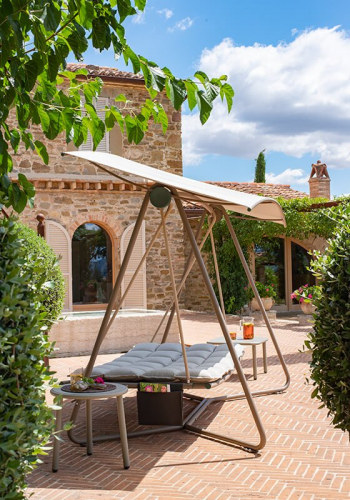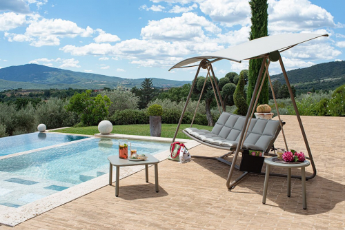 Reel – это «диван-качели», которые трансформируются в большую и удобную кушетку, поскольку спинку можно легко отрегулировать в соответствии с потребностями. Сумка для дивана-качелей станет отличным дополнением и сделает отдых более комфортным и удобным. Он позволяет хранить нужные вещи рядом и не отрываться от релакса.