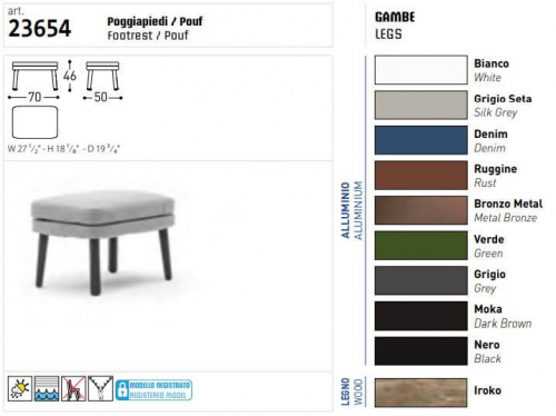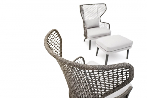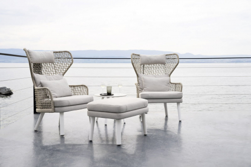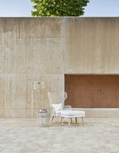 Банкетка для ног из коллекции Emma сочетается с креслами из одноименной коллекции, в частности с бержер, добавляя дополнительный комфорт, чтобы проводить дни на свежем воздухе в полной релаксации. Благодаря своему элегантному дизайну коллекция находит место в садах, на террасах, балконах, верандах, патио, в бассейнах в жилых и офисных интерьерах.