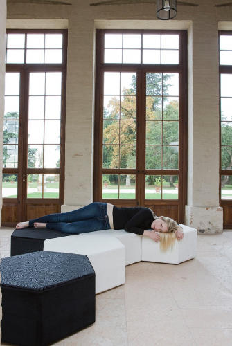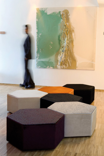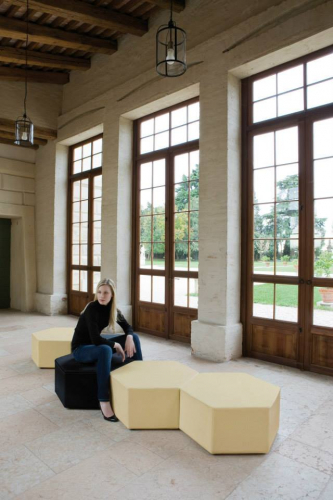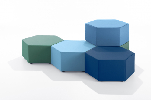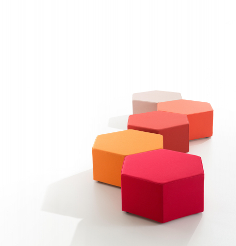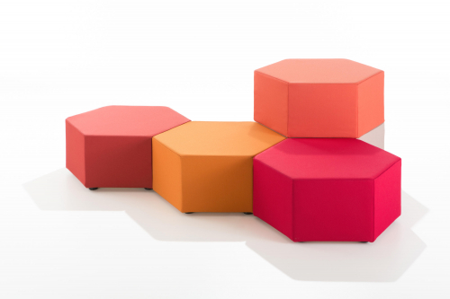 Пуф шестиугольной формы с яркой индивидуальностью Esa отличается невидимой системой соединения, которая позволяет соединять несколько элементов вместе для создания композиций самых разных цветов и форм.