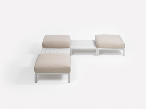 Мягкие самоцентрирующиеся подушки выполнены из элегантных текстур и тканей, частично регенерированных, и отличаются высоким техническим качеством: они выдерживают пребывание на открытом воздухе, чехлы можно снимать и стирать, они доступны в четырех очаровательных цветах. В сочетании с декоративными подушками с немного другим рисунком, но идеально подходящими оттенками они придают дивану индивидуальность и мягкость. Коллекция Maximo также включает в себя журнальный столик и держатель для предметов, который можно прикрепить к сиденью, оба выполнены из переработанного пластика.