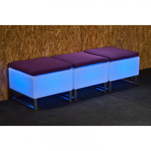 Светящийся пуф Chelsea может питаться от проводов или от аккумуляторов. Можно запросто подобрать нужный вариант и поставить, где захочется. Свечение тоже по желанию клиента: монохромное (одного цвета) или RGB (от англ. red, green, blue, по-русски "красный, зеленый, синий", переливающееся).