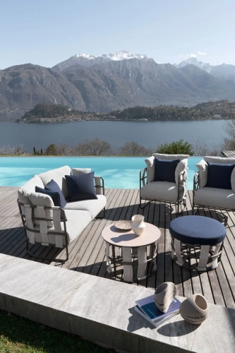 Пуф Liberty Wrap с элегантным и современным дизайном имеет металлическую конструкцию, дополненную изысканным переплетением тканевых лент, что придает ему оригинальность и визуальную легкость. Мягкое сиденье обеспечивает комфорт, что делает его универсальным и функциональным. Идеально подходящий как для внутреннего, так и для наружного использования, он сочетается с другими предметами из той же коллекции в качестве дополнительного сиденья или приставного столика, создавая гармоничный и цельный образ, в котором элегантность сочетается с практичностью и долговечностью, удовлетворяя всем стилевым требованиям.