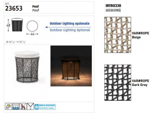 Пуф с мягким сиденьем сочетает в себе легкость и устойчивость, в котором изысканная текстура ручного плетения и прочная конструкция из алюминия с порошковым покрытием объединяются, чтобы сделать открытое пространство уникальным и функциональным.