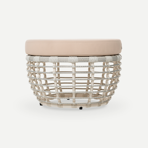 Пуф Lotus - это универсальный элемент для обустройства уличных зон отдыха, органично сочетающий функции дополнительного места для сидения и подставки для ног. Его эстетику определяет аккуратное трубчатое плетение, создающее визуально легкий объем, а надежность обеспечивает алюминиевый каркас. Модель предназначена для круглогодичного использования под навесом и идеально сочетается с другой плетеной мебелью коллекции Lotus.