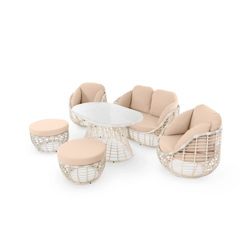 Цена на сайте указана за модель с плетением в цвете Доминикана и обивкой подушек из ткани Jamaica Beige. Для уточнения всех возможных вариантов материала и цвета данного изделия обращайтесь к нашим менеджерам.