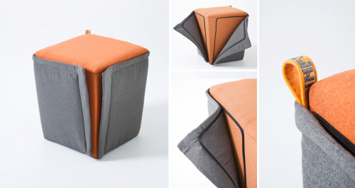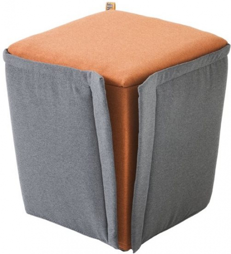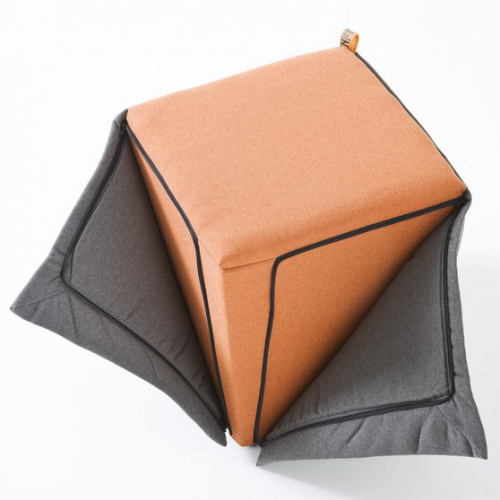 Съемное покрытие Finferlo дает возможность заменить, почистить или просто менять цвета пуфа. В углах пуфа два больших лацкана, подобно горловине куртки, указывают начальную точку двух петель, которые, сползая вниз по периметру объекта, позволяют снять покрытие или открыть ее достаточно просто, чтобы создать пространство для журналов или аксессуаров.