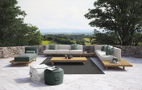 9.zero - это коллекция модульных систем. Легкий в сборке материал этих 9 базовых модулей позволяет реализовать большое количество композиций для удовлетворения различных требований к пространству и функциональности. Конструкции состоят из девяти реек, по девять дюймов каждая, из шлифованного и промасленного индонезийского тикового дерева. Подушки выполнены из быстросохнущего поролона и покрыты тканями из коллекции Atmosphera Outdoor.