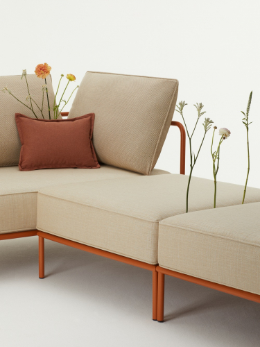 Flap – это коллекция модульной мягкой мебели, в которой элементы объединены по композиции с опорными поверхностями. Отличительной частью конструкции являются элементы в спинке, напоминающие по форме закрылки самолета, с функцией поддержки задних подушек и способные поворачиваться вокруг оси примерно на 15 градусов: это позволяет подушке иметь разный наклон для достижения максимально возможной степени комфорта. Модули Flap подходят для различных условий использования как в жилом, так и в контрактном секторах. Обивка подушек предлагается в тщательно подобранных различных текстурах, чтобы гармонично вписаться в классическую или современную обстановку на открытом воздухе. Подушки выполнены из акриловой ткани и предназначены для использования на улице. Дополнением к элементам служит приставной кофейный столик с окрашенной стальной рамой и столешницей из компакт-ламината HPL.
