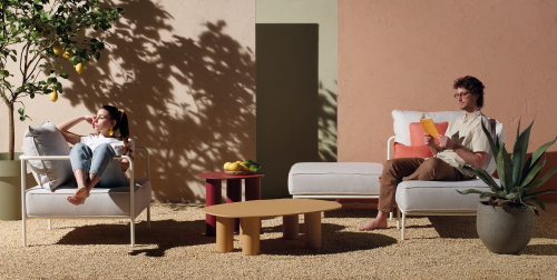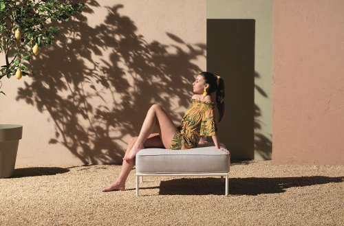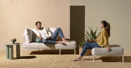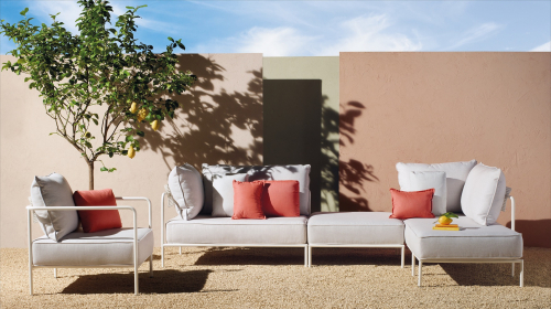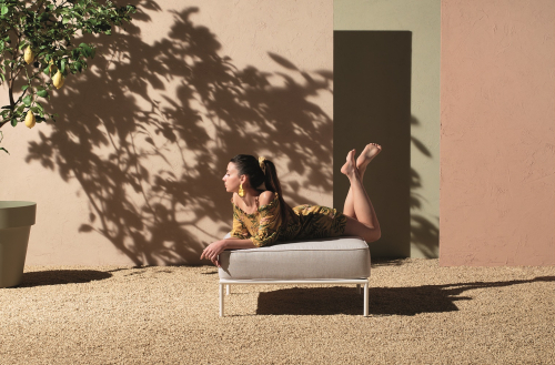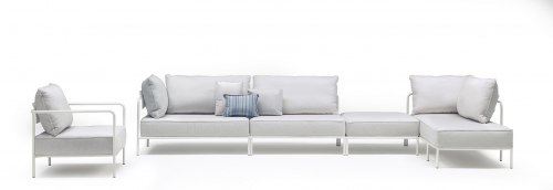 Flap – это коллекция модульной мягкой мебели, в которой элементы объединены по композиции с опорными поверхностями. Отличительной частью конструкции являются элементы в спинке, напоминающие по форме закрылки самолета, с функцией поддержки задних подушек и способные поворачиваться вокруг оси примерно на 15 градусов: это позволяет подушке иметь разный наклон для достижения максимально возможной степени комфорта. Модули Flap подходят для различных условий использования как в жилом, так и в контрактном секторах. Обивка подушек предлагается в тщательно подобранных различных текстурах, чтобы гармонично вписаться в классическую или современную обстановку на открытом воздухе. Подушки выполнены из акриловой ткани и предназначены для использования на улице. Дополнением к элементам служит приставной кофейный столик с окрашенной стальной рамой и столешницей из компакт-ламината HPL.