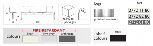 Система сидений Alice от дизайнеров Centro Stile Scab подходит для актовых залов и залов ожидания, изготовлена из прочного технополимера, основание из стальной рамы. Это идеальное решение для конференц-залов с оттенком истинного дизайна. Скамья ожидания Alice является модульной и может вместить несколько человек. Между сиденьями имеется компактная полка для вещей.