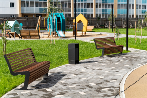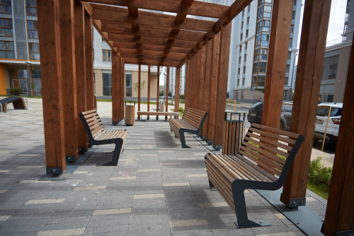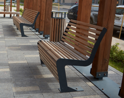 - Универсальность в применении. Можно сделать уголок отдыха, скомбинировав 2 скамейки и столик, или же установить по отдельности вдоль улиц. Есть вариант установки внутри здания.