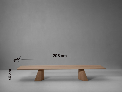 Уникальная скамья GOT из массива дуба сочетает в себе прочность и изысканный дизайн. Ее каркас состоит из двух соединенных частей, каждая из которых имеет округлую нижнюю часть и две асимметричные ножки-полумесяцы. Этот необычный дизайн создает впечатление сложной игры углов, форм и размеров, что делает скамью стильным акцентом в любом интерьере. Изделие обтекаемого графического силуэта придает ему легкость и изящность. Идеальный выбор для тех, кто ценит качество, оригинальность и комфорт.