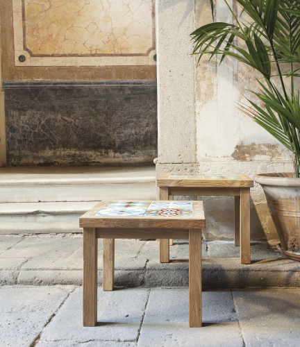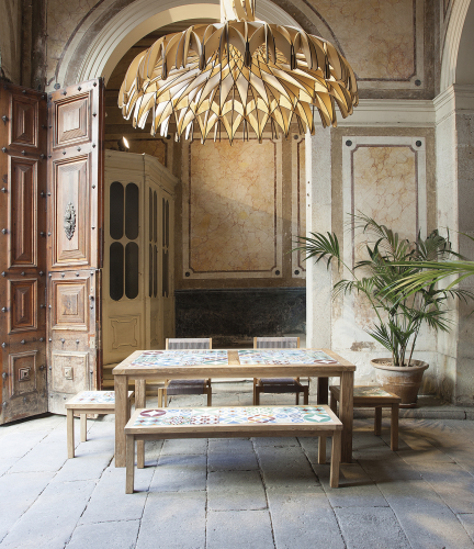 Balmes — это прочная и надежная коллекция. Сидение состоит из мозаики разноцветных гидравлических плиток. Их геометрические формы напоминают самые сложные художественные узоры каталонского модернизма. Твердая структура тикового дерева придает значимость каждому предмету.